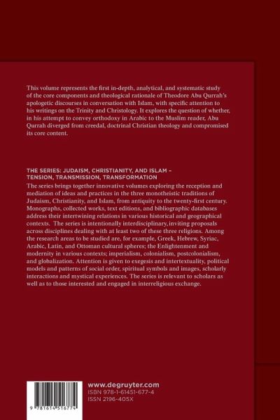 This volume presents Theodore Abu Qurrah's apologetic Christian theology in dialogue with Islam. It explores the question of whether, in his attempt to convey orthodoxy in Arabic to the Muslim reader, Abu Qurrah diverged from creedal, doctrinal Christian theology and compromised its core content. A comprehensive study of the theology of Abu Qurrah and its relation to Islamic and pre-Islamic orthodox Melkite thought has not yet been pursued in modern scholarship. Awad addresses this gap in scholarship by offering a thorough analytic hermeneutics of Abu Qurrah's apologetic thought, with specific attention to his theological thought on the Trinity and Christology. This study takes scholarship beyond attempts at editing and translating Abu Qurrah's texts and offers scholars, students, and lay readers in the fields of Arabic Christianity, Byzantine theology, Christian-Muslim dialogues, and historical theology an unprecedented scientific study of Abu Qurrah's theological mind.