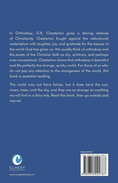 In Orthodoxy, G.K. Chesterton gives a stirring defense of Christianity. Chesterton fought against the reductionist materialism with laughter, joy, and gratitude for the beauty of the world God has given us. We usually think of orthodoxy and the tenets of the Christian faith as dry, arbitrary, and perhaps even nonsensical. Chesterton shows that orthodoxy is beautiful and fits perfectly the strange, quirky world. For those of us who do not pay any attention to the strangeness of the world, this book is essential reading. The world may not have fairies, but it does have the sun, rivers, trees, and the sky, and they are as strange as anything we will find in a fairy tale. Read this book, then go outside and marvel.