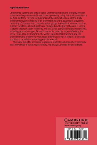 This book describes the interplay between orthonormal expansions and Banach space geometry.