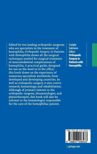 Professor Henri Horozowski. In Memoriam.- Professor Henri Horozowski. In Memoriam.- Pathogenesis.- Joint Damage as a Result of Hemarthrosis.- Peri-operative Management of Hemophiliac Patients.- Conservative or Surgical Treatment? Motion Analysis Can Help Decide.- Orthopedic Surgery in HIV-Positive Hemophiliac Patients.- The Liver and Surgery.- Peri-operative and Post-operative Management of Hemophiliac Patients without Inhibitors.- Peri-operative and Post-operative Management of Hemophiliac Patients with Inhibitors.- Postsurgical Pain.- Non-surgical Procedures.- Arthrocentesis.- Intra-articular Hyaluronic Acid Therapy.- Intra-articular Corticosteroid Therapy.- Rifampicin Synoviorthesis of the Ankle Joint.- Radioactive Synoviorthesis of the Knee.- Upper Limb.- Arthroscopic Treatment of Hemophilic Arthropathy of the Shoulder.- Radial Head Excision for Patients with Hemophilic Arthropathy of the Elbow.- Tendon Lengthening in Volkmann's Ischemic Contractures in Hemophilia.- Lower Limb.- Hip Osteotomy in Hemophilia.- Total Hip Arthroplasty in Patients with Hemophilia.- Pitfalls in Total Hip Replacement.- Management of the Hemophilic Knee.- Treatment of Knee Flexion Contractures using Casts and Hinges.- Arthroscopic Evaluation of the Knee.- Lengthening of Hamstring Tendons in Knee Flexion Contractures.- Knee Osteotomy.- Supracondylar Extension Osteotomy for the Treatment of Fixed Knee Flexion Contracture in Hemophiliac Patients.- Primary Total Knee Replacement.- Pitfalls in Primary Total Knee Replacement.- Arthroscopic Treatment of Hemophilic Arthropathy of the Ankle.- Surgical Resection of Osteophyte in the Ankle Joint.- Ankle Arthrodesis.- Bone Defects.- Percutaneous Treatment of Hemophilic Cysts using "Fibrin Glue".- Intraosseous and Subchondral Cysts.- Surgical Treatment of Hemophilic Pseudotumors.- Percutaneous Treatment of Hemophilic Pseudotumors.- Traumatology.- Treatment of Closed Fractures in Hemophiliac Patients.- Treatment of Exposed Fractures in Hemophiliac Patients.- Conclusions.- Orthopedic Surgery in Hemophiliac Patients: a Physiotherapist's Point of View.- Ten Pieces of Advice for an Orthopedic Surgeon.