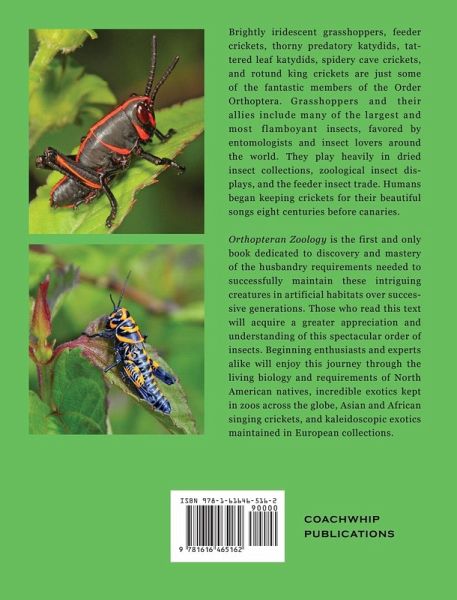 Brightly iridescent grasshoppers, feeder crickets, thorny predatory katydids, tattered leaf katydids, spidery cave crickets, and rotund king crickets are just some of the fantastic members of the Order Orthoptera. Grasshoppers and their allies include many of the largest and most flamboyant insects, favored by entomologists and insect lovers around the world. They play heavily in dried insect collections, zoological insect displays, and the feeder insect trade. Humans began keeping crickets for their beautiful songs eight centuries before canaries. Orthopteran Zoology is the first and only book dedicated to discovery and mastery of the husbandry requirements needed to successfully maintain these intriguing creatures in artificial habitats over successive generations. Those who read this text will acquire a greater appreciation and understanding of this spectacular order of insects. Beginning enthusiasts and experts alike will enjoy this journey through the living biology and requirements of North American natives, incredible exotics kept in zoos across the globe, Asian and African singing crickets, and kaleidoscopic exotics maintained in European collections. Orin McMonigle is the author of The Ultimate Guide to Breeding Beetles, Isopod Zoology, Centipedes in Captivity, and many more invertebrate husbandry guides.