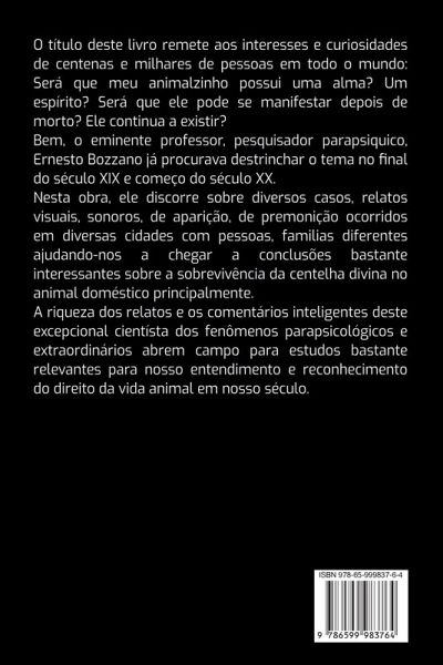 O t tulo deste livro remete aos interesses e curiosidades de centenas e milhares de pessoas em todo o mundo: Ser que meu animalzinho possui uma alma?