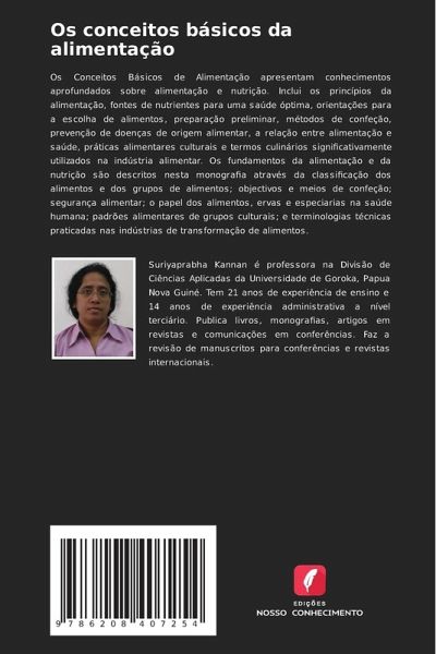 Os Conceitos Básicos de Alimentação apresentam conhecimentos aprofundados sobre alimentação e nutrição. Inclui os princípios da alimentação, fontes de nutrientes para uma saúde óptima, orientações para a escolha de alimentos, preparação preliminar, métodos de confeção, prevenção de doenças de origem alimentar, a relação entre alimentação e saúde, práticas alimentares culturais e termos culinários significativamente utilizados na indústria alimentar. Os fundamentos da alimentação e da nutrição são descritos nesta monografia através da classificação dos alimentos e dos grupos de alimentos; objectivos e meios de confeção; segurança alimentar; o papel dos alimentos, ervas e especiarias na saúde humana; padrões alimentares de grupos culturais; e terminologias técnicas praticadas nas indústrias de transformação de alimentos.
