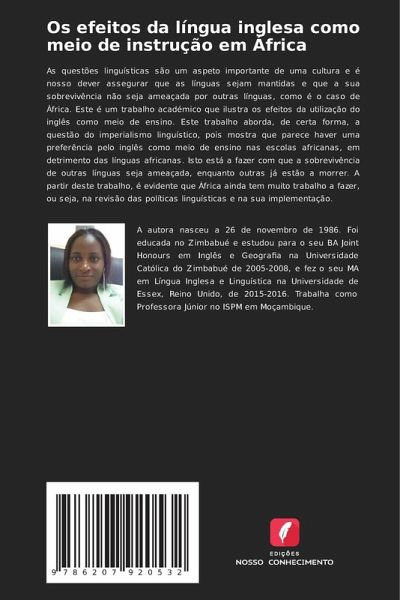 As questões linguísticas são um aspeto importante de uma cultura e é nosso dever assegurar que as línguas sejam mantidas e que a sua sobrevivência não seja ameaçada por outras línguas, como é o caso de África. Este é um trabalho académico que ilustra os efeitos da utilização do inglês como meio de ensino. Este trabalho aborda, de certa forma, a questão do imperialismo linguístico, pois mostra que parece haver uma preferência pelo inglês como meio de ensino nas escolas africanas, em detrimento das línguas africanas. Isto está a fazer com que a sobrevivência de outras línguas seja ameaçada, enquanto outras já estão a morrer. A partir deste trabalho, é evidente que África ainda tem muito trabalho a fazer, ou seja, na revisão das políticas linguísticas e na sua implementação.