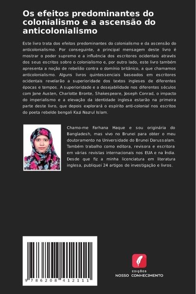 Este livro trata dos efeitos predominantes do colonialismo e da ascensão do anticolonialismo. Por conseguinte, a principal mensagem deste livro é mostrar o poder supremo e a influência dos escritores ocidentais através dos seus escritos sobre o colonialismo e, por outro lado, este livro também apresenta a noção de rebelião contra o domínio britânico, a que chamamos anticolonialismo. Alguns livros quintessenciais baseados em escritores ocidentais revelarão a superioridade dos textos ingleses de diferentes épocas e tempos. A superioridade e a desejabilidade nos diferentes séculos com Jane Austen, Charlotte Bronte, Shakespeare, Joseph Conrad, o impacto do imperialismo e a elevação da identidade inglesa estarão na primeira parte deste livro, que depois explorará o espírito anti-colonial nos escritos do poeta rebelde bengali Kazi Nazrul Islam.