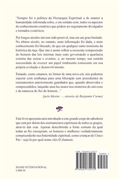 Este livro apresenta uma introdução a este grande corpo de sabedoria que está por detrás dos ensinamentos espirituais de todos os grupos, através das eras. Apenas descobrindo a fonte comum da qual todas as fés emergiram, os homens e mulheres verdadeiramente compreenderão sua fraternidade espiritual, como crianças do Único Pai-seja lá por qual nome eles O chamem. "Sempre foi a política da Hierarquia Espiritual a de manter a humanidade informada sobre, e em contato com, todos os aspectos do conhecimento esotérico que podem ser seguramente divulgados e tornados exotéricos. Por longos séculos isto tem sido possível, mas em um grau limitado. No último século, no entanto, mais informação foi dada, e mais conhecimento foi liberado, do que em qualquer outro momento da histórica da raça. Que isto é assim reflete a crescente compreensão do homem das leis internas mais sutis governando a aparência externa das coisas e eventos, e, ao mesmo tempo, sua sentida necessidade de exercer um papel totalmente consciente em sua própria evolução e desenvolvimento. Estando, como estamos, no limiar de uma nova era, nós podemos esperar com confiança para uma liberação sem precedentes de ensinamentos anteriormente guardados que, quando absorvidos e compreendidos, lançarão uma luz maior nos mistérios do universo e da natureza do Ser do homem..." (pelo Mestre -, através de Benjamin Creme)
