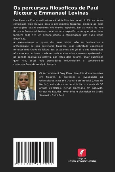 Paul Ric¿ur e Emmanuel Levinas são dois filósofos do século XX que deram contributos significativos para o pensamento filosófico, embora as suas abordagens sejam diferentes em muitos aspectos. Ler as obras de Paul Ric¿ur e Emmanuel Levinas pode ser uma experiência enriquecedora, mas também pode ser um desafio devido à complexidade das suas ideias filosóficas.Ao examinarmos a riqueza das suas ideias, não só destacamos a profundidade do seu património filosófico, mas sobretudo esperamos fornecer uma chave de leitura aos estudantes em geral, e aos estudantes africanos em particular, cada vez mais apaixonados e mesmo apaixonados, no sentido positivo da palavra, por estes dois autores. Quer queiramos quer não, estes dois pensadores influenciaram a compreensão contemporânea da condição humana.