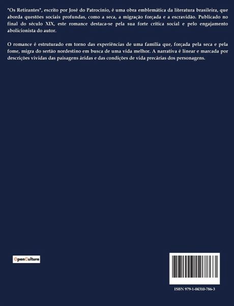 "Os Retirantes" de José do Patrocínio é uma obra literária que narra a saga de um grupo de pessoas que, forçadas pelas adversidades, deixam suas terras em busca de melhores condições de vida. A narrativa é dividida em três partes: "A Paróquia Abandonada", "A Retirada" e "A Capital". Na primeira parte, o autor descreve a situação de abandono e desespero em uma paróquia assolada pela seca e pela pobreza. Os habitantes, sem alternativas, decidem partir em busca de um futuro mais promissor. A segunda parte, "A Retirada", acompanha a difícil jornada dos retirantes, enfrentando desafios como a fome, a sede e as doenças. Durante o percurso, a solidariedade e a resiliência dos personagens são postas à prova, revelando a força e a determinação humanas diante das adversidades. Na terceira e última parte, "A Capital", os retirantes chegam ao destino almejado, mas se deparam com novas dificuldades e a dura realidade de uma cidade grande. A obra de Patrocínio é um retrato fiel das dificuldades enfrentadas pelos migrantes internos no Brasil, destacando temas como a desigualdade social, a luta pela sobrevivência e a esperança de dias melhores. Com uma linguagem rica e descritiva, o autor consegue transmitir a dor e a esperança dos retirantes, tornando a obra um importante documento social e histórico.