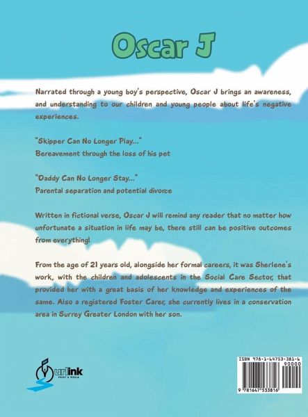 Oscar J Narrated through a young boy's perspective, Oscar J brings an awareness, and understanding to our children and young people about life's negative experiences. "Skipper Can No Longer Play..." Bereavement through the loss of his pet "Daddy Can No Longer Stay..." Parental separation and potential divorce Written in fictional verse, Oscar J will remind any reader that no matter how unfortunate a situation in life may be, there still can be positive outcomes from everything! From the age of 21 years old, alongside her formal careers, it was Sherlene's work, with the children and adolescents in the Social Care Sector, that provided her with a great basis of her knowledge and experiences of the same. Also a registered Foster Carer, she currently lives in a conservation area in Surrey Greater London with her son.