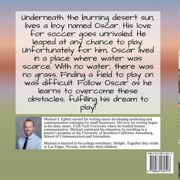 Underneath the burning desert sun, lives a boy named Oscar. His love for soccer goes unrivaled. He leaped at any chance to play. Unfortunately for him, Oscar lived in a place where water was scarce. With no water, there was no grass. Finding a field to play on was difficult. Follow Oscar as he learns to overcome these obstacles, fulfilling his dream to play!
