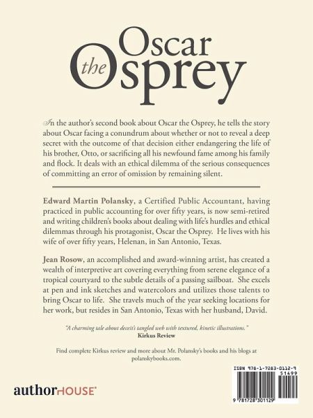 In the author's second book about Oscar the Osprey, he tells the story of Oscar facing a conundrum on whether or not to reveal a deep secret with the outcome of that decision either endangering the life of his brother, Otto, or sacrificing all his newfound fame among his family and flock. It deals with an ethical dilemma of the serious consequences of committing an error of omission by remaining silent.