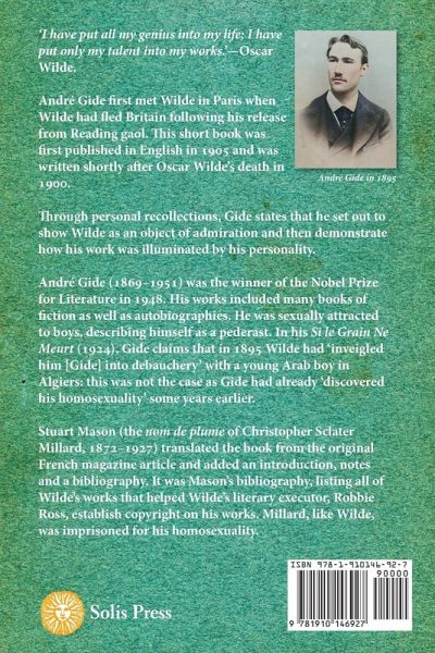 'I have put all my genius into my life; I have put only my talent into my works.'-Oscar Wilde. André Gide first met Wilde in Paris when Wilde had fled Britain following his release from Reading gaol. This short book was first published in English in 1905 and was written shortly after Oscar Wilde's death in 1900. Through personal recollections, Gide states that he set out to show Wilde as an object of admiration and then demonstrate how his work was illuminated by his personality. André Gide (1869-1951) was the winner of the Nobel Prize for Literature in 1948. His works included many books of fiction as well as autobiographies. He was sexually attracted to boys, describing himself as a pederast. In his Si le Grain Ne Meurt (1924), Gide claims that in 1895 Wilde had 'inveigled him [Gide] into debauchery' with a young Arab boy in Algiers: this was not the case as Gide had already 'discovered his homosexuality' some years earlier. Stuart Mason (the nom de plume of Christopher Sclater Millard, 1872-1927) translated the book from the original French magazine article and added an introduction, notes and a bibliography. It was Mason's bibliography, listing all of Wilde's works that helped Wilde's literary executor, Robbie Ross, establish copyright on his works. Millard, like Wilde, was imprisoned for his homosexuality. The book includes the five images from the original publication; three of which are of Oscar Wilde.