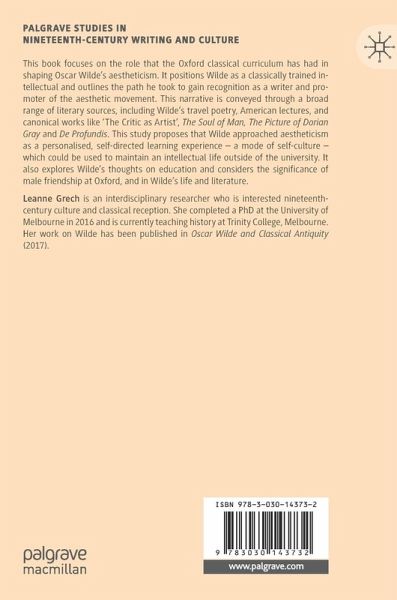 This book focuses on the role that the Oxford classical curriculum has had in shaping Oscar Wilde's aestheticism. It positions Wilde as a classically trained intellectual and outlines the path he took to gain recognition as a writer and promoter of the aesthetic movement. This narrative is conveyed through a broad range of literary sources, including Wilde's travel poetry, American lectures, and canonical works like 'The Critic as Artist', The Soul of Man, The Picture of Dorian Gray and De Profundis. This study proposes that Wilde approached aestheticism as a personalised, self-directed learning experience - a mode of self-culture - which could be used to maintain an intellectual life outside of the university. It also explores Wilde's thoughts on education and considers the significance of male friendship at Oxford, and in Wilde's life and literature.