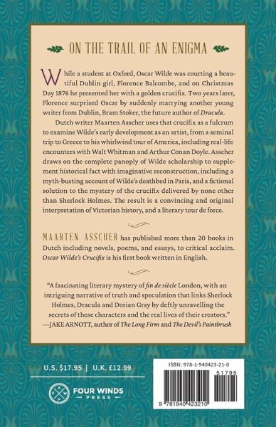 While a student at Oxford, Oscar Wilde was courting a beautiful Dublin girl, Florence Balcombe, and on Christmas Day 1876 he presented her with a love gift of a golden crucifix. Two years later, Florence surprised Oscar by suddenly marrying another young writer from Dublin, Bram Stoker, the future author of Dracula. Dutch writer Maarten Asscher uses that crucifix as a fulcrum to examine Wilde’s early development as an artist, from a seminal trip to Greece to his whirlwind tour of America and beyond, including real-life encounters with Walt Whitman and Arthur Conan Doyle. Asscher draws on the complete panoply of Wilde scholarship to supplement historical fact with imaginative reconstruction, including a myth-busting account of Wilde’s deathbed in Paris, and a fictional solution to the mystery of the crucifix delivered by none other than Sherlock Holmes. The result is a convincing and original interpretation of Victorian history, and a literary tour de force.