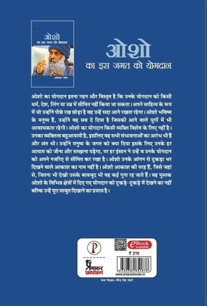 ओशो का योगदान इतना गहन और विस्तृत है कि उनके योगदान को किसी धर्म, देश, लिंग या उम्र में सीमित नहीं किया जा सकता। अपने साहित्य के रूप में जो उन्होंने पीछे रख छोड़ा है वह उन्हें सदा आगे रखता रहेगा। ओशो भविष्य के मनुष्य हैं, उन्होंने वह सब दे दिया है जिसकी आने वाले युगों में भी आवश्यकता रहेगी। ओशो का योगदान किसी व्यक्ति विशेष के लिए नहीं है। उनका व्यक्तित्व बहुआयामी है, इसलिए वह सभी संभावनाओं का आरंभ भी है और अंत भी। उन्होंने मनुष्य के जगत को क्या दिया इसके लिए उनके हर आयाम को जीना और समझना पड़ेगा, पर हर इंसान ने उन्हें व उनके योगदान को अपने नजरिए से सीमित कर रखा है। ओशो उनके आंगन से टुकड़ा भर दिखने वाले आकाश का नाम नहीं है। ओशो आकाश की तरह हैं, जिसे जहां से, जितना भी देखो उसके बावजूद भी वह कई गुना रह जाते हैं। यह पुस्तक ओशो के विभिन्न क्षेत्रों दिए गए योगदान को टुकड़े-टुकड़े में देखने का नहीं उन्हें पूरा साबुत दिखाने का प्रयास है।