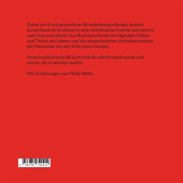 Oskar, ein frisch geworfener Brandenburger Beagle, kommt kurzerhand als Ersthund in eine ostfriesische Familie und wird so vom Ossi zum Wessi. Das Buch beschreibt die täglichen Höhen und Tiefen des Lebens und die absonderlichen Verhaltensweisen der Menschen aus der Sicht eines Hundes. Feine [sa]ti(e)rische BELLetristik für alle Hundefreunde und solche, die es werden wollen.