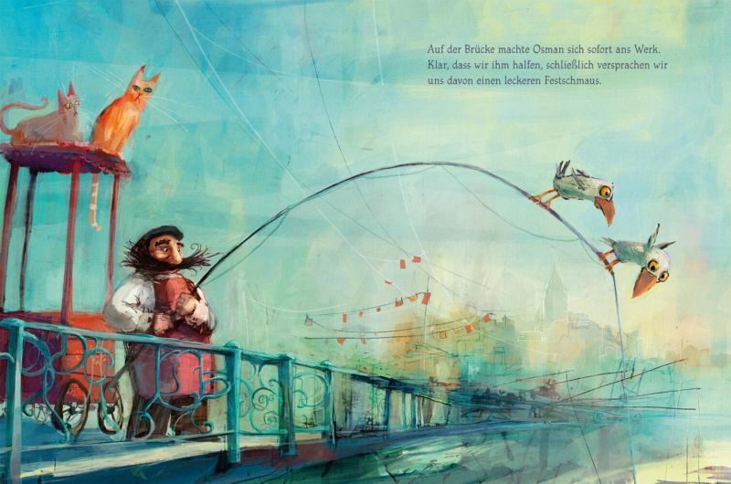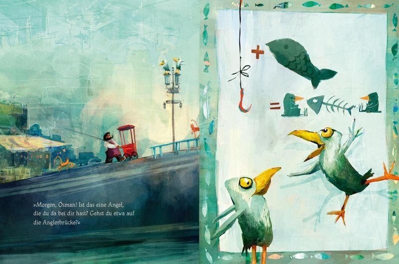 Osman, der Angler, wird von zwei heißhungrigen Möwen mit Argusaugen beobachtet. Sie sind sich sicher, dass der eine oder andere Fisch für sie abfallen wird. Doch Osman verfolgt eigene Pläne. Egal, wo er angelt, am Wasser, von Hausdächern, auf Streifzügen durch die Stadt, er fängt alles Mögliche, nur keine Fische. Doch am Ende erleben nicht nur die Möwen eine Überraschung!