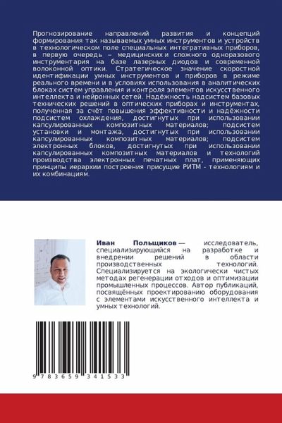 Prognozirowanie naprawlenij razwitiq i koncepcij formirowaniq tak nazywaemyh umnyh instrumentow i ustrojstw w tehnologicheskom pole special'nyh integratiwnyh priborow, w perwuü ochered' ¿ medicinskih i slozhnogo odnorazowogo instrumentariq na baze lazernyh diodow i sowremennoj wolokonnoj optiki. Strategicheskoe znachenie skorostnoj identifikacii umnyh instrumentow i priborow w rezhime real'nogo wremeni i w uslowiqh ispol'zowaniq w analiticheskih blokah sistem uprawleniq i kontrolq älementow iskusstwennogo intellekta i nejronnyh setej. Nadözhnost' nadsistem bazowyh tehnicheskih reshenij w opticheskih priborah i instrumentah, poluchennaq za schöt powysheniq äffektiwnosti i nadözhnosti podsistem ohlazhdeniq, dostignutyh pri ispol'zowanii kapsulirowannyh kompozitnyh materialow; podsistem ustanowki i montazha, dostignutyh pri ispol'zowanii kapsulirowannyh kompozitnyh materialow; podsistem älektronnyh blokow, dostignutyh pri ispol'zowanii kapsulirowannyh kompozitnyh materialow i tehnologij proizwodstwa älektronnyh pechatnyh plat, primenqüschih principy ierarhii postroeniq prisuschie RITM - tehnologiqm i ih kombinaciqm.