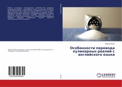 Rabota posvyashhena issledovaniju osobennostej perevoda kulinarnyh realij s anglijskogo yazyka na russkij. V rabote byli rassmotreny stilisticheskie osobennosti texta knigi Vasantha Prasad "Indian Vegetarian Cooking from an American Kitchen". Privedeny primery razlichnyh klassifikacij realij i osoboe vnimanie udeleno izucheniju sposobov perevoda realij. V rezul'tate nami bylo vyyavleno, chto samym rasprostranjonnym priemom perevoda kulinarnyh realij yavlyaetsya transkripciya/transliteraciya.