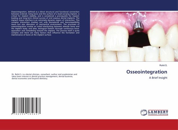 Osseointegration, defined as a direct structural and functional connection between ordered, living bone and the surface of a load-carrying implant, is critical for implant stability, and is considered a prerequisite for implant loading and long-term clinical success of end osseous dental implants. The implant-tissue interface is an extremely dynamic region of interaction. This complex interaction involves not only biomaterial and biocompatibility issues but also alteration of mechanical environment. The processes of osseointegration involve an initial interlocking between alveolar bone and the implant body, and later, biological fixation through continuous bone apposition and remodeling toward the implant. The process itself is quite complex and there are many factors that influence the formation and maintenance of bone at the implant surface.