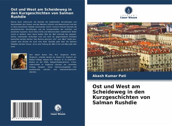Dieses Buch untersucht, wie Rushdie die traditionellen Vorstellungen und Absolutheiten des Ostens und des Westens kritisiert und dekonstruiert und wie er diese künstlichen Gebilde auseinander nimmt. Ironisch kritisiert Rushdie die absolutistischen Vorstellungen und die Schwachstellen der östlichen und westlichen Systeme. Durch diese Kritik und Dekonstruktion traditioneller Bilder macht er deutlich, dass diese beiden Teile der Welt innerhalb des globalen Dorfes miteinander verbunden sind und nicht als gegensätzliche Einheiten betrachtet werden können. Das Komma zwischen "Ost" und "West" bildet also sowohl eine Brücke als auch eine Kluft. Rushdie geht über die üblichen Debatten darüber hinaus, ob es eine Teilung der Welt in Ost und West gibt oder nicht.