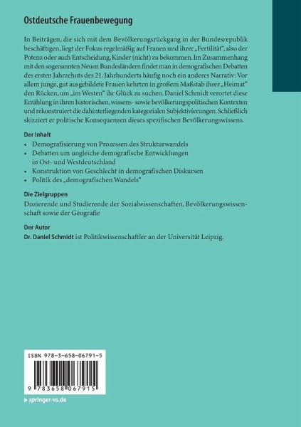 In Beiträgen, die sich mit dem Bevölkerungsrückgang in der Bundesrepublikbeschäftigen, liegt der Fokus regelmäßig auf Frauen und ihrer "Fertilität",also der Potenz oder auch Entscheidung, Kinder (nicht) zu bekommen. ImZusammenhang mit den sogenannten Neuen Bundesländern findet man indemografischen Debatten des ersten Jahrzehnts des 21. Jahrhunderts häufig noch ein anderes Narrativ: Vor allem junge, gut ausgebildete Frauen kehrten in großem Maßstab ihrer "Heimat" den Rücken, um "im Westen" ihr Glück zu suchen. Daniel Schmidt verortet diese Erzählung in ihren historischen, wissens- sowie bevölkerungspolitischen Kontexten und rekonstruiert die dahinterliegenden kategorialen Subjektivierungen. Schließlich skizziert er politische Konsequenzen dieses spezifischen Bevölkerungswissens.