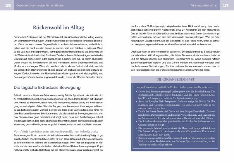 Ergänzt werden die Programme durch praktische Tipps, mit denen du Rückenproblemen im Alltag vorbeugen und deinen Körper langfristig stärken kannst. So übernimmst du aktiv die Verantwortung für einen gesunden, schmerzfreienRücken, der sich mit jedem Tag freier und stärker anfühlt!