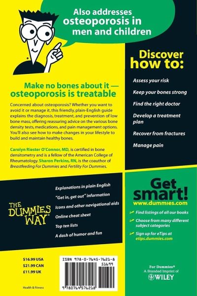 There are an estimated 55 million Americans over the age of 50 who have low bone mass. This easy-to-understand guide helps readers assess their risk and find a practical approach to the diagnosis, treatment, and prevention of osteoporosis. It covers bone density tests and a wide range of treatment options for osteoporosis-from hormone replacement therapy and acupuncture to calcium-rich foods, supplements, and exercise-and offers pointers on preventing broken hips and other common fractures.