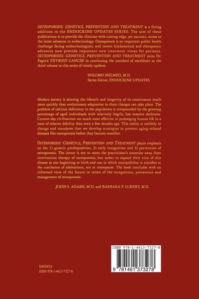 Osteoporosis: Genetics, Prevention and Treatment places emphasis on the (1) genetic predisposition, (2) early recognition and (3) prevention of osteoporosis. The intent is not to move the practitioner's attention away from intervention therapy of osteoporosis, but rather to expand their view of this disease as one beginning at birth and one in which susceptibility is manifest at the conclusion of adolescence, not at menopause. The book concludes with an informed view of the future in terms of the recognition, prevention and management of osteoporosis.