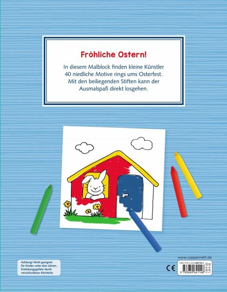 In diesem Malblock finden kleine Künstler 40 niedliche Osterbilder und 4 farbenfrohe Wachsmalstifte, damit der Ausmalspaß direkt losgehen kann!