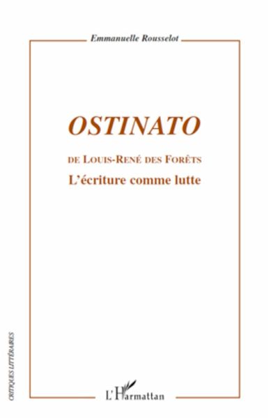 Au commencement était la lutte. Placer l'écriture de Louis-René des Forêts sous le signe de la lutte n'est pas le fruit d'une vérité théorique mais le résultat d'une confrontation de plusieurs années avec les textes. Une vérité de parole s'en est dégagée, vérité d'expérience, celle donnée par un homme, à la fin de sa vie, en un passage de siècle et de millénaire, sous une forme inachevée et fragmentée. Ce livre propose au lecteur d'entrer dans les flots héraclitéens de l'écriture desforestienne. L'oeuvre entière de l'auteur est convoquée autour d'Ostinato, ce coeur battant qui compte "au nombre des plus beaux livres de la seconde moitié de ce siècle".