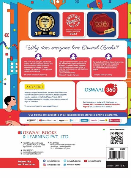Description of the product: ¿ Strictly as per the latest CBSE Board Syllabus released on 31st March, 2023 (CBSE Cir No. Acad-39/2023) ¿ 100% Updated with Latest Syllabus & Fully Solved Board Paper ¿ Crisp Revision with timed reading for every chapter ¿ Extensive Practice with 3000+ Questions & Board Marking Scheme Answers ¿ Concept Clarity with 1000+concepts, Smart Mind Maps & Mnemonics ¿ Final Boost with 50+ concept videos ¿ NEP Compliance with Competency Based Questions & Art Integration