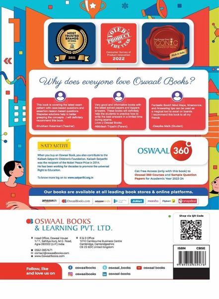 Description of the product: ¿ Strictly as per the latest CBSE Board Syllabus released on 31st March, 2023 (CBSE Cir No. Acad-39/2023) ¿ 100% Updated with Latest Syllabus & Fully Solved Board Paper ¿ Crisp Revision with timed reading for every chapter ¿ Extensive Practice with 3000+ Questions & Board Marking Scheme Answers ¿ Concept Clarity with 1000+concepts, Smart Mind Maps & Mnemonics ¿ Final Boost with 50+ concept videos ¿ NEP Compliance with Competency Based Questions & Art Integration