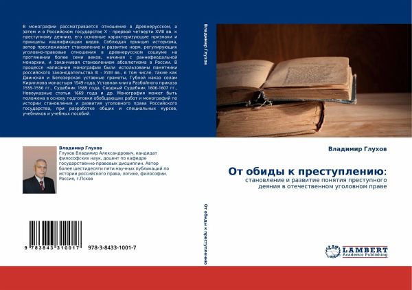 V monografii rassmatriwaetsq otnoshenie w Drewnerusskom, a zatem i w Rossijskom gosudarstwe X - prerwoj chetwerti XVIII ww. k prestupnomu deqniü, ego osnownye harakterizuüschie priznaki i principy kwalifikacii widow. Soblüdaq princip istorizma, awtor proslezhiwaet stanowlenie i razwitie norm, reguliruüschih ugolowno-prawowye otnosheniq w drewnerusskom sociume na protqzhenii bolee semi wekow, nachinaq s rannefeodal'noj monarhii, i zakanchiwaq stanowleniem absolütizma w Rossii. V processe napisaniq monografii byli ispol'zowany pamqtniki rossijskogo zakonodatel'stwa XI - XVIII ww., w tom chisle, takie kak Dwinskaq i Belozerskaq ustawnye gramoty, Gubnoj nakaz selam Kirillowa monastyrq 1549 goda, Ustawnaq kniga Razbojnogo prikaza 1555-1556 gg., Sudebnik 1589 goda, Swodnyj Sudebnik 1606-1607 gg., Nowoukaznye stat'i 1669 goda i dr. Monografiq mozhet byt' polozhena w osnowu podgotowki obobschaüschih rabot i monografij po istorii stanowleniq i razwitiq ugolownogo prawa Rossijskogo gosudarstwa, pri razrabotke obschih i special'nyh kursow, uchebnikow i uchebnyh posobij.