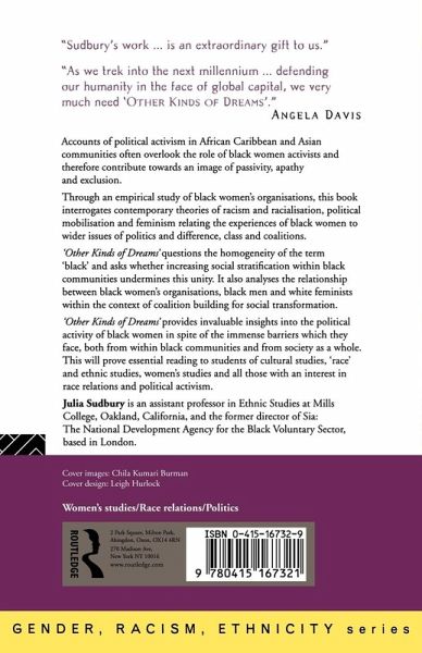 'Other Kinds of Dreams' provides an invaluable insight into the political activity of black and Asian women in the UK both inside and outside the black and Asian communities. The book breaks new ground by: * destroying the misconception that black and Asian women lack political involvement * integrating gender into the study of black and Asian political participation in Britain * exploring the potential for alliances between black women and the new progressive 'black man's movement' * examining black women activists' perception and experiences of white feminism. 'Other Kinds of Dreams also questions the homogeneity of the term 'black' and asks whether increasing social stratification within black communities undermines this unity.