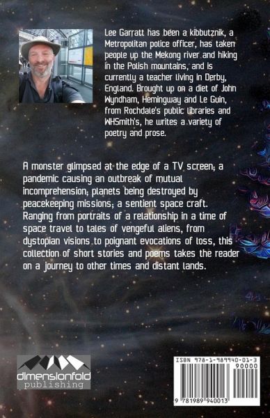 A monster glimpsed at the edge of a TV screen; a pandemic causing an outbreak of mutual incomprehension; planets being destroyed by peacekeeping missions; a sentient space craft. Ranging from portraits of a relationship in a time of space travel to tales of vengeful aliens, from dystopian visions to poignant evocations of loss, this collection of short stories and poems takes the reader on a journey to other times and distant lands.