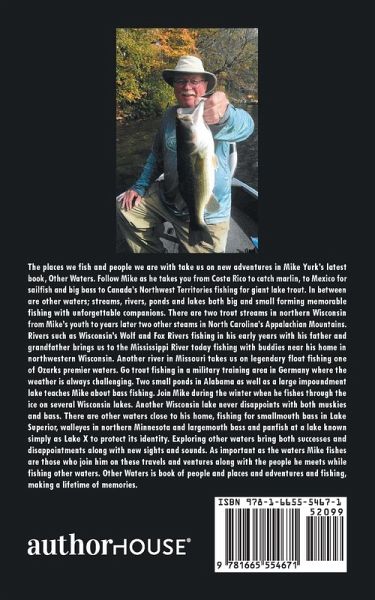 The places we fish and people we are with takes us on new adventures in Mike Yurk's latest book, Other Waters. Follow Mike as he takes you from Costa Rico to catch marlin, to Mexico for sailfish and big bass to Canada's Northwest Territories fishing for giant lake trout. In between are other waters; streams, rivers, ponds and lakes both big and small forming memorable fishing with unforgettable companions. There are two trout streams in northern Wisconsin from Mike's youth to years later two other steams in North Carolina's Appalachian Mountains. Rivers such as Wisconsin's Wolf and Fox Rivers fishing in his early years with his father and grandfather brings us to the Mississippi River today fishing with buddies near his home in northwestern Wisconsin. Another river in Missouri takes us on legendary float fishing one of Ozarks premier waters. Go trout fishing in a military training area in Germany where the weather is always challenging. Two small ponds in Alabama as well as a large impoundment lake teaches Mike about bass fishing. Join Mike during the winter when he fishes through the ice on several Wisconsin lakes. Another Wisconsin lake never disappoints with both muskies and bass. There are other waters close to his home, fishing for smallmouth bass in Lake Superior, walleyes in northern Minnesota and largemouth bass and panfish at a lake known simply as Lake X to protect its identity. Exploring other waters bring both successes and disappointments along with new sights and sounds. As important as the waters Mike fishes are those who join him on these travels and ventures along with the people he meets while fishing other waters. Other Waters is book of people and places and adventures and fishing, making a lifetime of memories.
