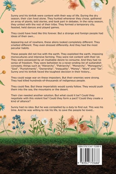 THE STATUS QUO IS JUST A PASSING PHASE! Sunny and his kinfolk were content with their way of life. During the dry season, their clan lived alone. They hunted whenever they chose, gathered an array of plants, told stories, and took part in debates. In the rainy season, they united with the rest of their tribe. They formed a temporary city, feasted, held dances and played games. They could have lived like this forever. But a strange and foreign people had ideas of their own... Appearing out of nowhere, these aliens looked completely different. They smelled different. They even dressed differently. And they had the most peculiar habits.These people did not live with the earth. They exploited the earth, imposing monocultures and intensive farming. They were not content with their lot. They were possessed by an insatiable desire to consume. And they had no sense of freedom. They were beholden to a never-ending list of outlandish concepts; things such as "Hierarchy", "Patriarchy", "Monarchy", "Monogamy", "God", "Punishments", "Ownership", "Inequality", "Money", "Work" and "Tax". Sunny and his kinfolk faced the toughest decision in their history... They could wage war on these imposters. But their enemies were strong. They had killed hundreds-of-thousands of indigenous people. They could flee. But these imperialists would surely follow. They would push them into the sea, the mountains or the desert. Their clan needed another solution. But what could it be? Could they negotiate with this violent foe? Could they form a pact? Could they create a kind of alliance? Sunny had no idea. But he was compelled by a duty to find out. This was his time. And he was willing to risk his life, to save the people he loved... THIS IS NOT THE END OF HISTORY. OTHER WORLDS WERE POSSIBLE...