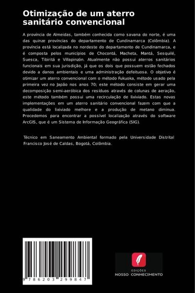 A província de Almeidas, também conhecida como savana do norte, é uma das quinze províncias do departamento de Cundinamarca (Colômbia). A província está localizada no nordeste do departamento de Cundinamarca, e é composta pelos municípios de Chocontá, Macheta, Mantá, Sesquilé, Suesca, Tibiritá e Villapinzón. Atualmente não possui aterros sanitários funcionais em sua jurisdição, já que os dois que possuem estão fechados devido a danos ambientais e uma administração defeituosa. O objetivo é otimizar um aterro convencional com o método Fukuoka, método usado pela primeira vez no Japão nos anos 70; este método consiste em gerar uma decomposição semi-aeróbica dos resíduos através de colunas de aeração, este método também possui uma recirculação de lixiviado. Estas novas implementações em um aterro sanitário convencional fazem com que a qualidade do lixiviado melhore e a produção de metano diminua. Procedemos para encontrar a possível localização através do software ArcGIS, que é um Sistema de Informação Geográfica (SIG).