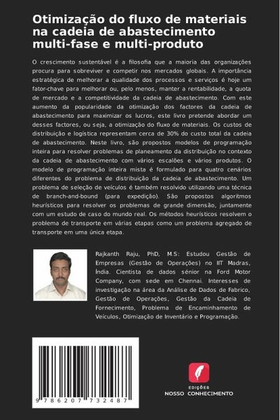 O crescimento sustentável é a filosofia que a maioria das organizações procura para sobreviver e competir nos mercados globais. A importância estratégica de melhorar a qualidade dos processos e serviços é hoje um fator-chave para melhorar ou, pelo menos, manter a rentabilidade, a quota de mercado e a competitividade da cadeia de abastecimento. Com este aumento da popularidade da otimização dos factores da cadeia de abastecimento para maximizar os lucros, este livro pretende abordar um desses factores, ou seja, a otimização do fluxo de materiais. Os custos de distribuição e logística representam cerca de 30% do custo total da cadeia de abastecimento. Neste livro, são propostos modelos de programação inteira para resolver problemas de planeamento da distribuição no contexto da cadeia de abastecimento com vários escalões e vários produtos. O modelo de programação inteira mista é formulado para quatro cenários diferentes do problema de distribuição da cadeia de abastecimento. Um problema de seleção de veículos é também resolvido utilizando uma técnica de branch-and-bound (para expedição). São propostos algoritmos heurísticos para resolver os problemas de grande dimensão, juntamente com um estudo de caso do mundo real. Os métodos heurísticos resolvem o problema de transporte em várias etapas como um problema agregado de transporte em uma única etapa.
