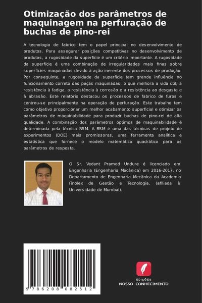A tecnologia de fabrico tem o papel principal no desenvolvimento de produtos. Para assegurar posições competitivas no desenvolvimento de produtos, a rugosidade da superfície é um critério importante. A rugosidade da superfície é uma combinação de irregularidades mais finas sobre superfícies maquinadas devido à ação inerente dos processos de produção. Por conseguinte, a rugosidade da superfície tem grande influência no funcionamento correto das peças maquinadas, o que melhora a vida útil, a resistência à fadiga, a resistência à corrosão e a resistência ao desgaste e à abrasão. Este relatório destacou os processos de fabrico de furos e centrou-se principalmente na operação de perfuração. Este trabalho tem como objetivo proporcionar um melhor acabamento superficial e otimizar os parâmetros de maquinabilidade para produzir buchas de pino-rei de alta qualidade. A combinação dos parâmetros óptimos de maquinabilidade é determinada pela técnica RSM. A RSM é uma das técnicas de projeto de experimentos (DOE) mais promissoras, uma ferramenta analítica e estatística que fornece o modelo matemático quadrático para os parâmetros de resposta.
