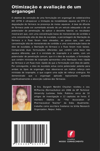 O objetivo da conceção de uma formulação em organogel de oxitetraciclina HCl (OTH) é ultrapassar a limitação da instabilidade aquosa da OTH e a degradação do fármaco na presença de meios aquosos. A taxa de difusão do fármaco pode ser aumentada através de um veículo adequado e de um potenciador de penetração. Ao aplicar o desenho fatorial, os resultados mostraram que, com uma concentração baixa de monosterato de sorbitão e uma concentração alta de óleo de eucalipto, a percentagem de libertação do fármaco e o fluxo foram mais elevados, ao passo que, com uma concentração alta de monosterato de sorbitão e uma concentração baixa de óleo de eucalipto, a libertação do fármaco e o fluxo foram mais baixos. Comparando duas formulações diferentes que contêm uma base não aquosa diferente, que é o miristato de isopropilo e o azeite, com um potenciador de penetração comum, que é o óleo de eucalipto, a formulação que contém miristato de isopropilo apresentou uma libertação mais rápida do fármaco e um fluxo mais rápido do que a formulação com óleo de azeite. Por conseguinte, o óleo de eucalipto actua como potenciador potente para ambos os tipos de organogel, mas observa-se um melhor reforço com miristato de isopropilo, o que sugere uma ação de reforço sinérgica. Foi demonstrado que o organogel aplicado topicamente aumenta significativamente a absorção cutânea dos fármacos.