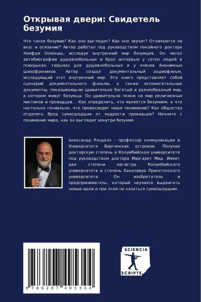 Chto takoe bezumie? Kak ono wyglqdit? Kak ono zwuchit? Otlichaütsq li wkus i osqzanie? Awtor rabotal pod rukowodstwom pokojnogo doktora Hamfri Osmonda, issleduq wnutrennij mir bezumcew. On chital awtobiografii dushewnobol'nyh i bral interw'ü u soten lüdej w psihushkah, tür'mah dlq dushewnobol'nyh i u chlenow Anonimnyh shizofrenikow. Awtor sozdal dokumental'nyj radiofil'm, issleduüschij ätot wnutrennij mir. Jeta kniga predstawlqet soboj scenarij dokumental'nogo fil'ma, a takzhe wspomogatel'nye dokumenty, pokazywaüschie udiwitel'no bogatyj i raznoobraznyj mir, w kotorom zhiwut bezumcy. On udiwitel'no pohozh na mir religioznyh mistikow i prowidcew... Kak opredelit', chto qwlqetsq bezumiem, a chto nastol'ko genial'no, chto prewoshodit nashe ponimanie? Kak obschestwu otdelit' bred sumasshedshih ot mudrosti prowidcew? Nachnite s ponimaniq mira, kak on wyglqdit iznutri bezumiq.