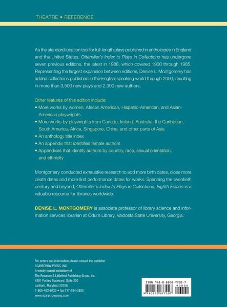 Representing the largest expansion between editions, this updated volume of Ottemiller's Index to Plays in Collections is the standard location tool for full-length plays published in collections and anthologies in England and the United States throughout the 20th century and beyond. This new volume lists more than 3,500 new plays and 2,000 new authors, as well as birth and/or death information for hundreds of authors.