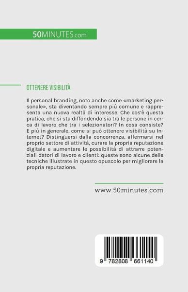 Il personal branding, noto anche come "marketing personale", sta diventando sempre più comune e rappresenta una nuova realtà di interesse. Che cos'è questa pratica, che si sta diffondendo sia tra le persone in cerca di lavoro che tra i selezionatori? In cosa consiste? E più in generale, come si può ottenere visibilità su Internet? Distinguersi dalla concorrenza, affermarsi nel proprio settore di attività, curare la propria reputazione digitale e aumentare le possibilità di attrarre potenziali datori di lavoro e clienti: queste sono alcune delle tecniche illustrate in questo opuscolo per migliorare la propria reputazione.