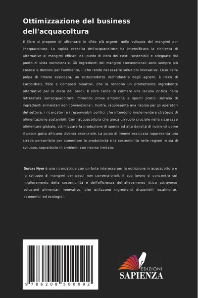 Il libro si propone di affrontare le sfide più urgenti nello sviluppo dei mangimi per l'acquacoltura. La rapida crescita dell'acquacoltura ha intensificato la richiesta di alternative ai mangimi efficaci dal punto di vista dei costi, sostenibili e adeguate dal punto di vista nutrizionale. Gli ingredienti dei mangimi convenzionali sono sempre più costosi e dannosi per l'ambiente, il che rende necessarie soluzioni innovative. L'uso della polpa di limone essiccata, un sottoprodotto dell'industria degli agrumi, è ricco di carboidrati, fibre e composti bioattivi, che lo rendono un promettente ingrediente alternativo per le diete dei pesci. Il libro cerca di colmare una lacuna critica nella letteratura sull'acquacoltura, fornendo prove empiriche e spunti pratici sull'uso di ingredienti alimentari non convenzionali. Inoltre, rappresenta una risorsa per gli operatori del settore, i ricercatori e i responsabili politici che intendono implementare strategie di alimentazione sostenibili. Con l'acquacoltura che gioca un ruolo cruciale nella sicurezza alimentare globale, ottimizzare la produzione di specie ad alta densità di nutrienti come il pesce gatto africano diventa essenziale. La polpa di limone essiccata rappresenta una strada percorribile per aumentare la produttività e la sostenibilità nelle regioni in via di sviluppo, soprattutto in ambienti con risorse limitate.