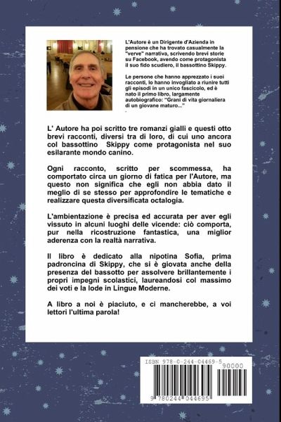 Le persone che hanno apprezzato i suoi racconti su FB, dove ha scoperto la sua "verve" di scrittore, lo hanno invogliato a riunire tutti gli episodi in un unico fascicolo, ed è nato il primo libro, largamente autobiografico: "Grani di vita giornaliera di un giovane maturo..." Da lì ha proseguito a scrivere e sono venuti alla luce questi otto brevi racconti, e tre romanzi gialli, riuniti in un unico volume, "Tre rari topazi", per meglio gustarli nella loro interezza. Come sempre il libro è dedicato alla nipotina Sofia, fonte inesauribile di ispirazione e di incoraggiamento e prima estimatrice