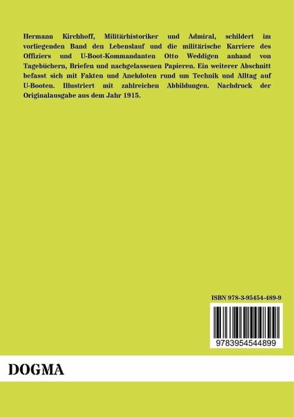 Hermann Kirchhoff, Militärhistoriker und Admiral, schildert im vorliegenden Band den Lebenslauf und die militärische Karriere des Offiziers und U-Boot-Kommandanten Otto Weddigen anhand von Tagebüchern, Briefen und nachgelassenen Papieren. Ein weiterer Abschnitt befasst sich mit Fakten und Anekdoten rund um Technik und Alltag auf U-Booten. Illustriert mit zahlreichen Abbildungen. Nachdruck der Originalausgabe aus dem Jahr 1915.