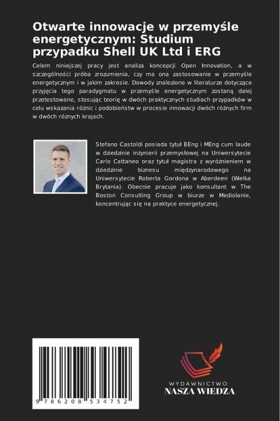 Celem niniejszej pracy jest analiza koncepcji Open Innovation, a w szczególnöci próba zrozumienia, czy ma ona zastosowanie w przemy¿le energetycznym i w jakim zakresie. Dowody znalezione w literaturze dotycz¿ce przyj¿cia tego paradygmatu w przemy¿le energetycznym zostan¿ dalej przetestowane, stosuj¿c teori¿ w dwóch praktycznych studiach przypadków w celu wskazania ró¿nic i podobie¿stw w procesie innowacji dwóch ró¿nych firm w dwóch ró¿nych krajach.