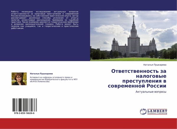 Rabota poswqschena issledowaniü aktual'nyh woprosow otwetstwennosti za nalogowye prestupleniq w sowremennoj Rossii.Osnowywaqs' na sobstwennom prakticheskom opyte, awtor rassmatriwaet razlichnye sposoby ukloneniq ot uplaty nalogow, illüstriruq rassuzhdeniq primerami iz sudebnoj praktiki. Takzhe wnimanie udelqetsq teoreticheskim problemam i woprosam zakonodatel'noj tehniki. Rabota mozhet byt' polezna kak uchaschimsq, tak i teoreticheskim i prakticheskim rabotnikam.